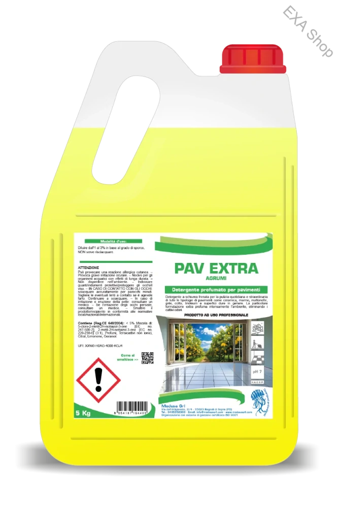🧴 Pav Extra je vysoko účinný parfumovaný čistiaci prostriedok na každodenné umývanie všetkých druhov umývateľných podláh. Vďaka svojim aktívnym zložkám dôkladne čistí povrchy, zanecháva ich žiarivé, bez šmúh a navyše dodáva priestoru príjemnú a sviežu vôňu, ktorá sa udrží dlhšie ako pri bežných čistiacich prostriedkoch.