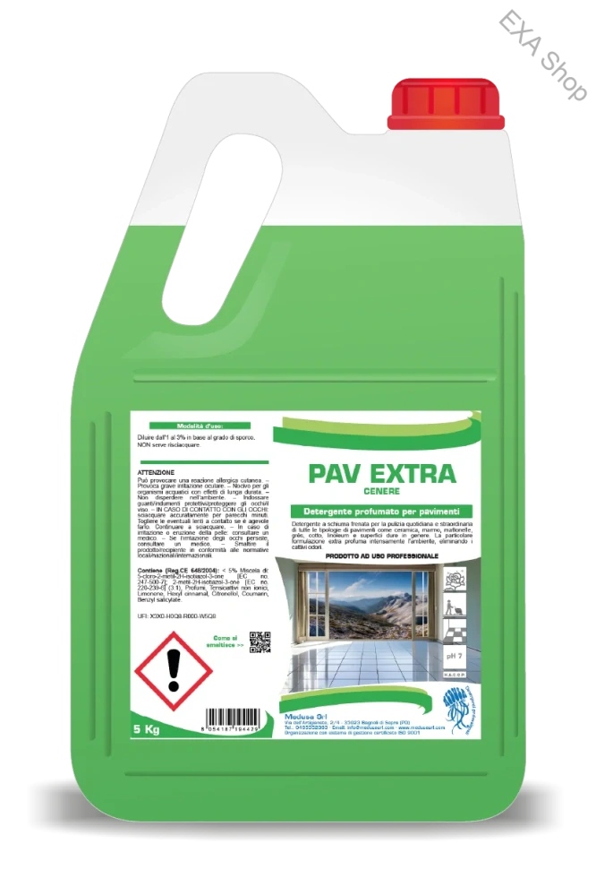 🧴 Pav Extra je vysoko účinný parfumovaný čistiaci prostriedok na každodenné umývanie všetkých druhov umývateľných podláh. Vďaka svojim aktívnym zložkám dôkladne čistí povrchy, zanecháva ich žiarivé, bez šmúh a navyše dodáva priestoru príjemnú a sviežu vôňu, ktorá sa udrží dlhšie ako pri bežných čistiacich prostriedkoch.