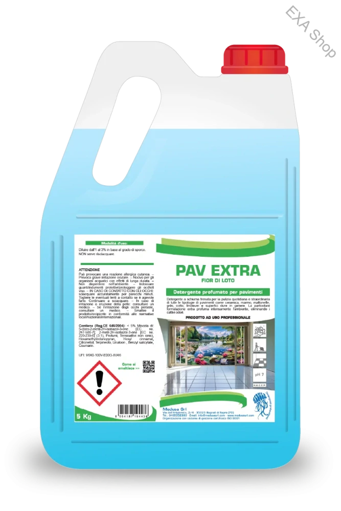 🧴 Pav Extra je vysoko účinný parfumovaný čistiaci prostriedok na každodenné umývanie všetkých druhov umývateľných podláh. Vďaka svojim aktívnym zložkám dôkladne čistí povrchy, zanecháva ich žiarivé, bez šmúh a navyše dodáva priestoru príjemnú a sviežu vôňu, ktorá sa udrží dlhšie ako pri bežných čistiacich prostriedkoch.